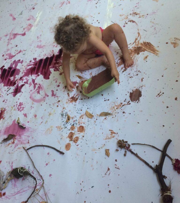 Brinca livremente, explora o quintal, participa do ciclo do alimento, convive com diferentes idades, vive rituais simples, descansa e participa de experiências sensoriais, artísticas e imaginativas.